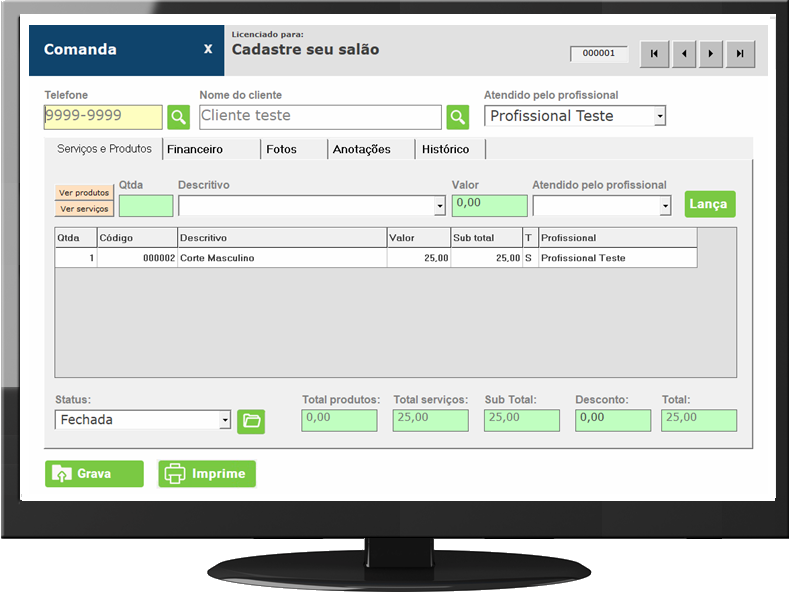Baixar GrátisRegistro de comandas de atendimento de produtos e serviços, fotos, código de barras, comissões, impressão.