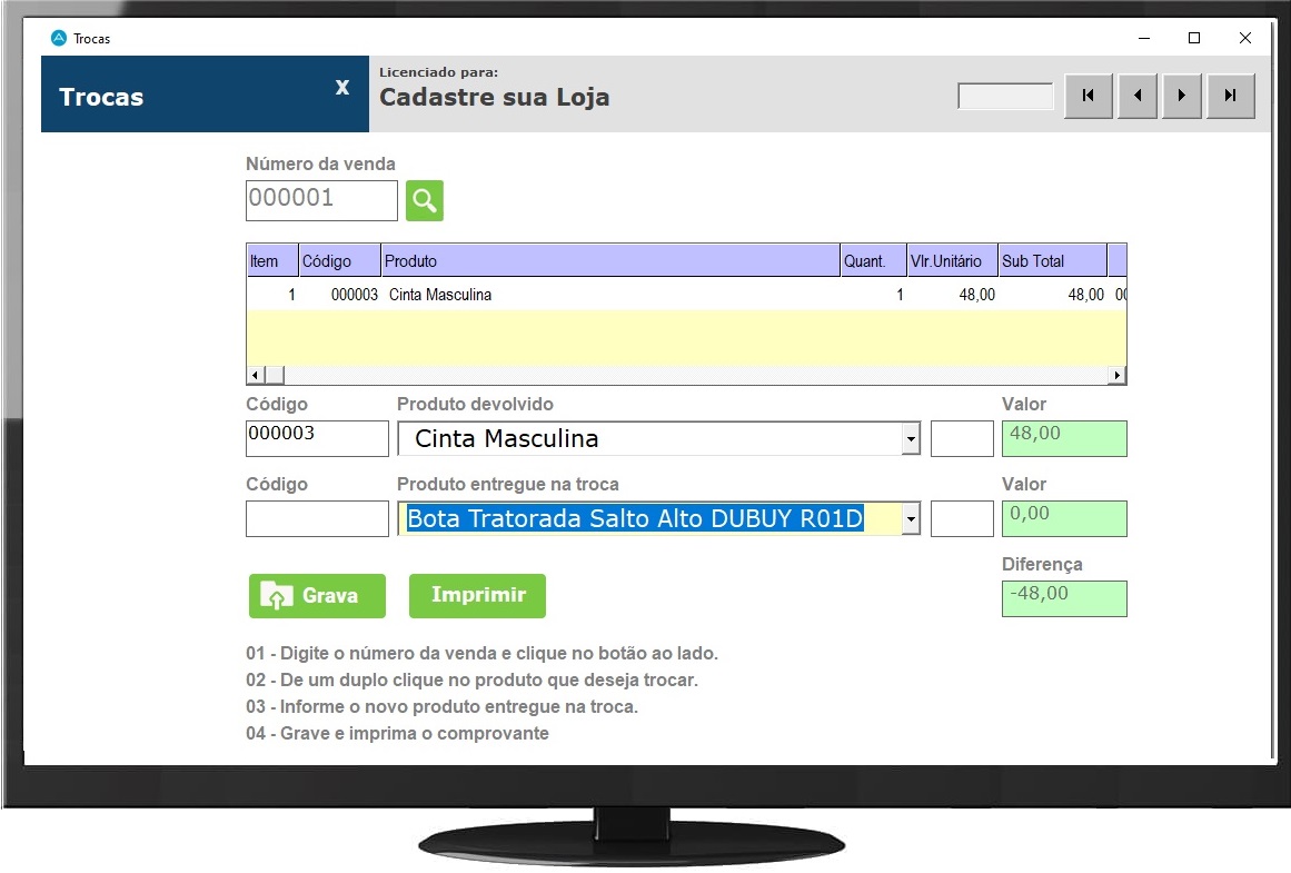 Baixar GrátisMódulo próprio de trocas de produtos, integrado com caixa e estoque.